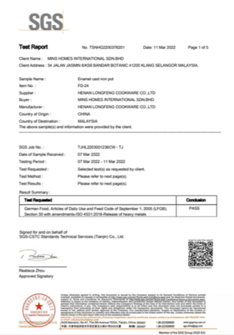 Longfeng Cookware works strictly according to ISO9001-2000 quality standards, had passed audit by BSCl , and products can reach EU AND FDA standards